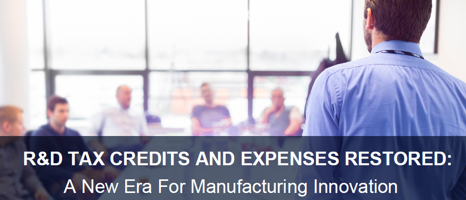 Live Webinar: R&D TAX CREDITS AND EXPENSES RESTORED: A New Era For Manufacturing Innovation
